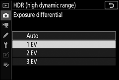 Para escolher a diferença de exposição entre as duas fotos, realce Diferencial de exposição e pressione 2 .