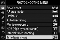 Destaque Filme de lapso de tempo no menu de disparo de fotos e pressione 2 .