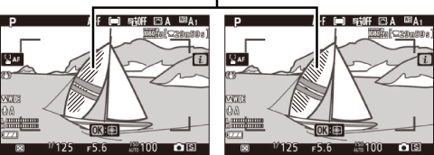 Se a exibição de realces e os realces de pico estiverem ativados, somente os realces de pico serão exibidos no modo de foco manual. Para visualizar a exibição de realces, selecione Desligado para a configuração personalizada d9 (Realces de pico ) > Nível de pico .