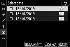 - Selecionar data : Crie cópias JPEG de todas as imagens NEF (RAW) tiradas nas datas selecionadas.
