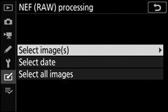 - Selecionar todas as imagens : Crie cópias JPEG de todas as imagens NEF (RAW) no cartão de memória (vá para a Etapa 4).