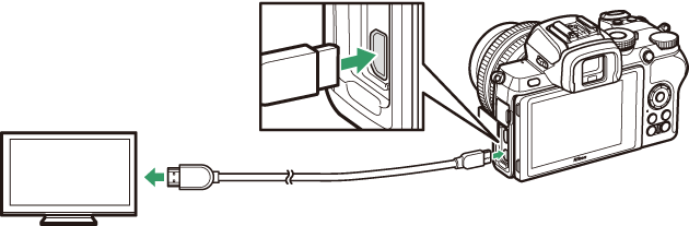 A saída HDMI não está disponível enquanto os filmes estão sendo gravados em tamanhos de quadro de filme de 1920 × 1080 120p, 1920 × 1080 100p ou 1920 × 1080 em câmera lenta ou quando a câmera está conectada a um computador executando o Camera Control Pro 2.