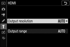 - Resolução de saída : Escolha o formato de saída de imagens para o dispositivo HDMI. Se Automático for selecionado, a câmera selecionará automaticamente o formato apropriado.