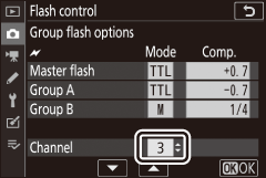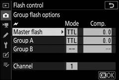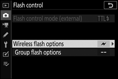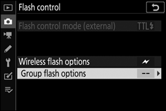 Realce Opções de flash de grupo na tela de controle de flash e pressione 2 .