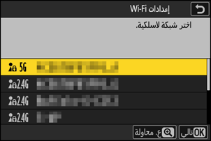 سوف تبحث الكاميرا عن الشبكات النشطة حاليًا في محيطك وتعرضها بأسمائها (مُعرِّف SSID).