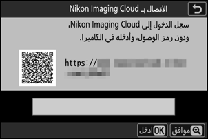 سيظهر رمز الاستجابة السريعة وعنوان URL اللازم للوصول إلى خدمة Nikon Imaging Cloud من خلال جهاز الكمبيوتر أو الجهاز الذكي.