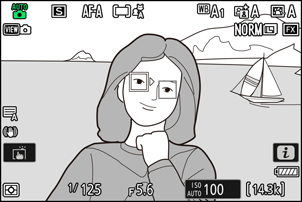 ستتحول نقطة التركيز البؤري إلى اللون الأخضر إذا استطاعت الكاميرا ضبط التركيز البؤري بعد اكتشاف وجه أو عيني هدف صورة شخصية بشرية. إذا لم تتمكن الكاميرا من ضبط التركيز البؤري، سوف تومض نقطة التركيز البؤري باللون الأحمر.