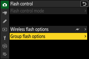 C : Маркирайте [ Опции групова светкавица ] в дисплея [ Управл. на светкавицата ] и натиснете 2 .