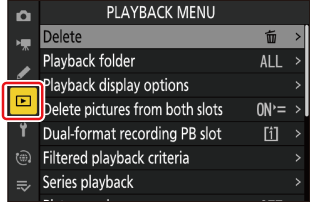 За да покажете менюто за възпроизвеждане, изберете раздела D (меню за възпроизвеждане) в менютата на фотоапарата.