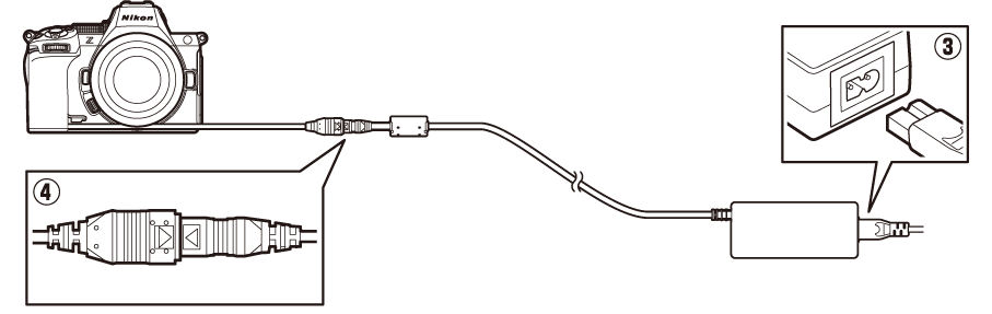 Připojení napájecího konektoru EP‑5B a napájecího adaptéru EH‑5d , EH‑5c nebo EH‑5b