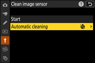 - V nabídce nastavení vyberte [ Čištění obrazového snímače ], poté zvýrazněte [ Spustit ] a stiskněte J pro zahájení čištění.