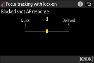 Zvolte, jak rychle bude ostření reagovat, když něco projde mezi objektem a fotoaparátem, když je pro režim ostření vybráno AF-C nebo AF-C , když je fotoaparát v režimu AF-A .