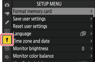 Chcete-li zobrazit nabídku nastavení, vyberte kartu B v nabídkách fotoaparátu.