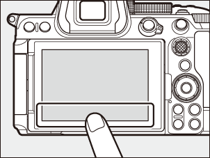 Když je pro Uživatelské nastavení f4 vybráno [ ON ] [ Fn dotykem ] > [ Povolit/zakázat Fn dotykem ], můžete použít dotykové ovládací prvky monitoru k úpravě nastavení při komponování snímků v hledáčku.
