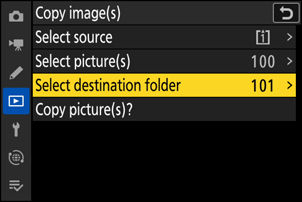 Når du har indtastet et mappenummer eller fremhævet mappenavnet, skal du trykke på J for at vælge mappen og vende tilbage til menuen [ Kopier billede(r) ].