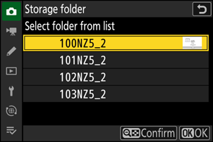 - Εάν υπάρχει ήδη ένας φάκελος με τον επιλεγμένο αριθμό, ένα εικονίδιο W , X ή Y θα εμφανιστεί στα αριστερά του αριθμού φακέλου. Πατήστε J για να ολοκληρώσετε τη λειτουργία και να επιστρέψετε στο κύριο μενού. εάν επιλέξατε ένα φάκελο με την ένδειξη W ή X , θα επιλεγεί ως φάκελος για νέες φωτογραφίες.
