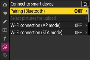 To disable Bluetooth, select [OFF] for [Connect to smart device] > [Pairing (Bluetooth)] > [Bluetooth connection] in the camera network menu.