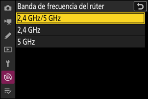 Seleccione la banda del SSID seleccionado al conectarse a una red inalámbrica en el modo de estación Wi-Fi. Seleccione [2,4 GHz/5 GHz] para conectarse a redes que funcionen en cualquier banda.