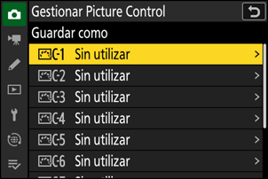 Elija un destino para el Picture Control personalizado (de C-1 a C-9).