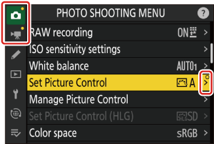 Järgmistel juhtudel kuvatakse kaamera menüü menüüvahekaartidele ja menüüüksustele teavitusmärgid, nagu näidatud. Kui kuvamiseks on valitud teavitusmärgiga menüü, kaob märk.