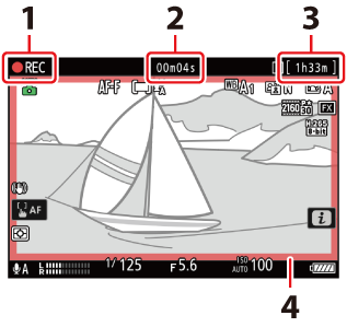 Ekraanile ilmub salvestamise indikaator ja võttekuva äärised muutuvad punaseks. Ekraanil kuvatakse ka järelejäänud aeg ehk teisisõnu ligikaudne uute kaadrite kogus, mida saab mälukaardile salvestada.
