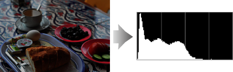 Jos kuvassa on objekteja, joilla on laaja kirkkausalue, sävyjakauma on suhteellisen tasainen.