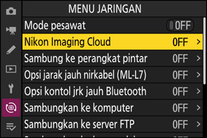 Kamera: Pilih [ON] untuk [Smbgkn ke Nikon Imaging Cloud].
