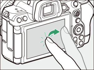 - Selama fotografi terus-menerus, kontrol sentuh dapat digunakan hanya untuk mengambil satu gambar pada satu waktu. Gunakan tombol pelepas rana untuk fotografi terus-menerus.