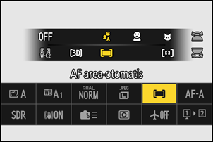 Mode area AF dapat dipilih menggunakan item [Deteksi mode area AF/subjek] di menu i atau item [Mode area AF] di menu pemotretan foto dan perekaman film.