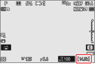 - Tampilan pemotretan menunjukkan jumlah foto yang dapat diambil pada pengaturan saat ini.