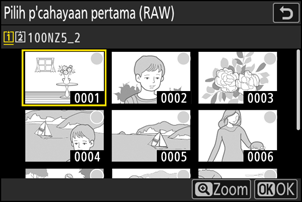 | [Pilih p'cahayaan pertama (RAW)] | Pilih pencahayaan pertama dari gambar NEF (RAW) pada kartu memori. |