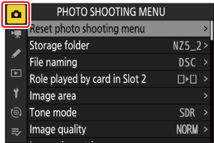 Per visualizzare il menu di scatto delle foto, selezionare la scheda C nei menu della fotocamera.