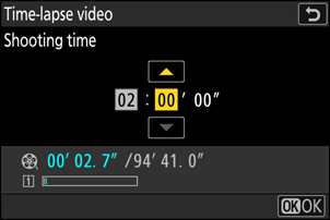 Evidenziare [ Video time-lapse ] nel menu di scatto foto e premere 2 .