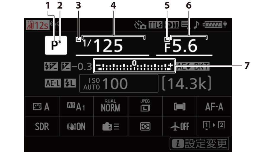 - 露出補正マーク(0露出補正して画像の明るさを調整する)