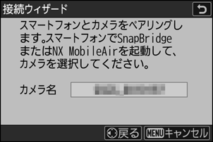 カメラに図のような画面が表示されたら、スマートフォンでSnapBridgeアプリを起動してください。