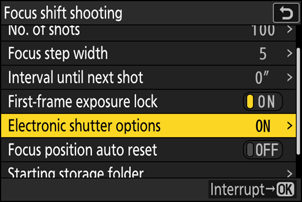 [ Electronic shutter options ] бөлектеп, 2 түймесін басыңыз.