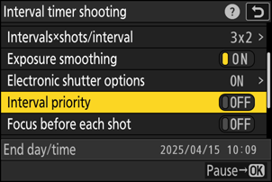 [ Interval priority ] параметрін бөлектеп, [ ON ] немесе [ OFF ] таңдау үшін 2 түймесін басыңыз.