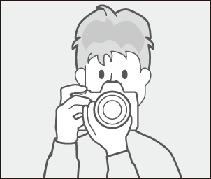 초점을 맞추려면 셔터 버튼을 반누름합니다(즉, 셔터 버튼을 살짝 누르면서 중간에 멈춤, 0 사진 촬영(b 모드)).