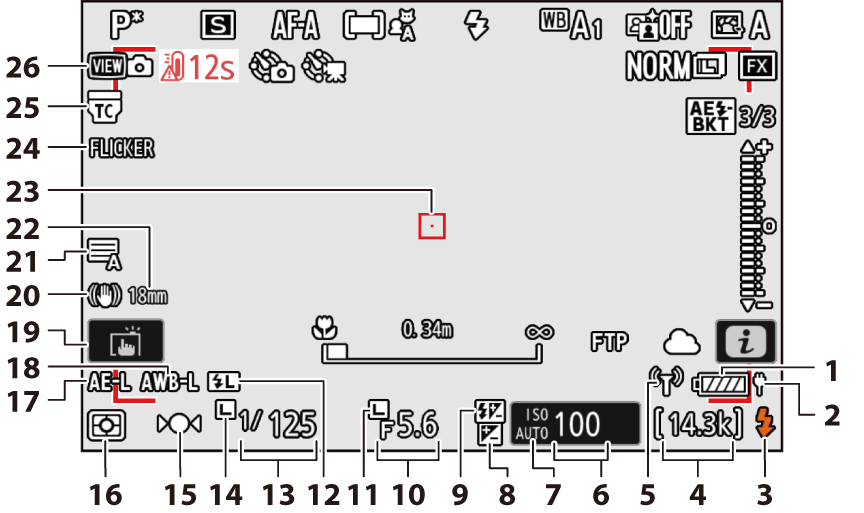 텔레 컨버터가 내장된 NIKKOR Z 렌즈가 부착되고 텔레 컨버터가 활성화된 경우에만 표시됩니다.