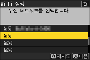 - 카메라에 입력할 수 없는 문자가 포함된 SSID는 표시되지 않습니다.