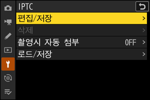아래 설명된 대로 IPTC 프리셋을 카메라에서 만들거나 편집하여 사진에 첨부할 수 있습니다.