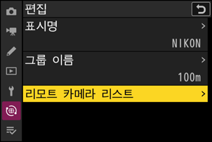 마스터 카메라에서 리모트 카메라 설정을 편집하려면 리모트 카메라 리스트에서 카메라를 강조 표시하고 2를 누릅니다.