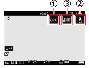 laikmatis piktogramą ( q ) monitoriuje, kad nustatytumėte laikmačio delsą ir pasirinktumėte kadrų skaičių, kuris bus nufotografuotas pasibaigus laikmačio galiojimo laikui. Vaizdo įrašo režimu nustatykite vaizdo įrašymo laikmačio delsą. - Taip pat galite reguliuoti ekspoziciją bakstelėdami ekspozicijos kompensavimo piktogramą ( w ).