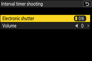 - Jei [ Electronic shutter options ] > [ Electronic shutter ] pasirinktas [ ON ], užrakto garsas skambės kiekvieną kartą, nebent [ Volume ] nustatytas į [ 0 ] (atminkite, kad tai taikoma net tada, kai sąrankos meniu [ Silent mode ] yra pasirinktas [ ON ]).