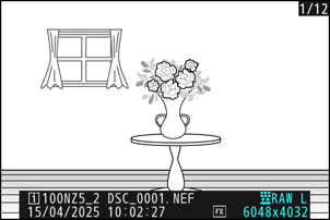 Rodyti NEF ( RAW ) nuotrauką, nufotografuotą tonų režimui pasirinkus [ SDR ], tada paspauskite mygtuką i .