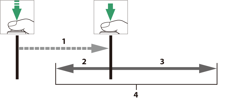 Velg lengden på serieopptaket fra slutten av minnebufferen når utløseren trykkes helt ned og maksimal lengde på serieopptaket mens utløseren er helt nedtrykket i høyhastighets bildeopptak +-modus.