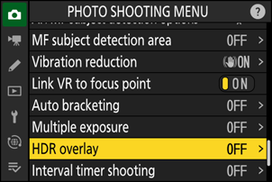 Marker [ HDR-overlapping ] i fotoopptaksmenyen og trykk på 2 .