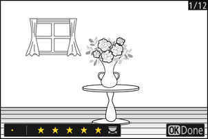 Roter hovedkommandohjulet for å markere ønsket vurdering og trykk på J for å velge. Velg mellom rangeringer fra null til fem stjerner, eller velg d for å markere bildet som en kandidat for senere sletting.