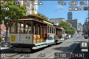 wskaźnik ostrości ( I ) na wyświetlaczu fotografowania może być użyte do potwierdzenia, czy obiekt w wybranym punkcie ostrości jest ostry (elektroniczny dalmierz). Punkt ostrości będzie również świecił na zielono, gdy obiekt będzie ostry.