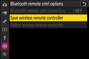 Wybierz [ Opcje pilota zdaln. ster. Bluetooth ] > [ Zapisz bezprz. pilot zdalnego ster. ] w menu sieciowym aparatu i naciśnij przycisk J